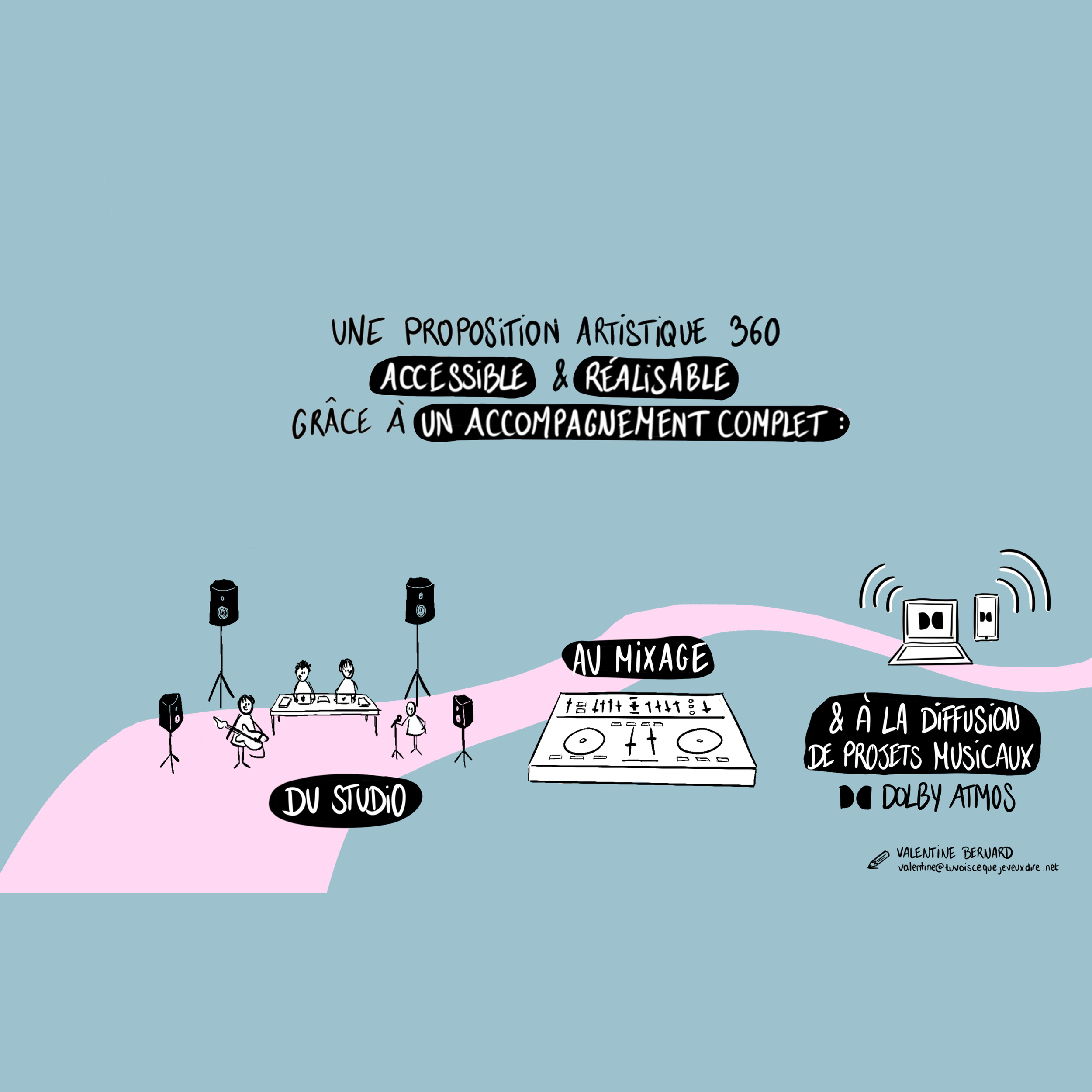 Ce label s'engage à accompagner les projets musicaux de mixage en Dolby Atmos. Les pièces musicales doivent être pensées et écrites pour le son et la diffusion en 360°.