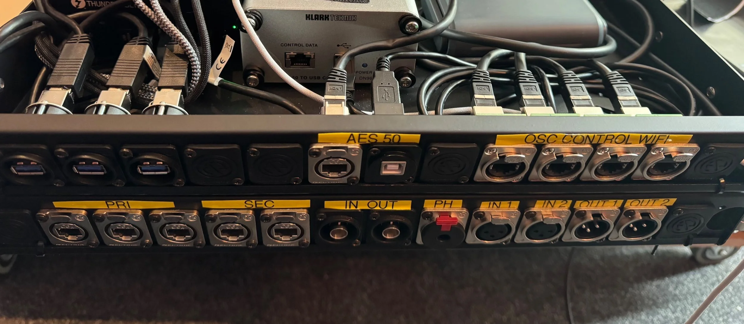 Chez 360Prod, nous avons conçu une régie sur mesure offrant une interopérabilité complète avec les différents processeurs de spatialisation du marché grâce à l'ADM-OSC. Ce système nous permet de gérer avec précision les trajectoires d'objets sonores, indépendamment des outils utilisés, tout en offrant un contrôle intuitif de l'espace sonore.
