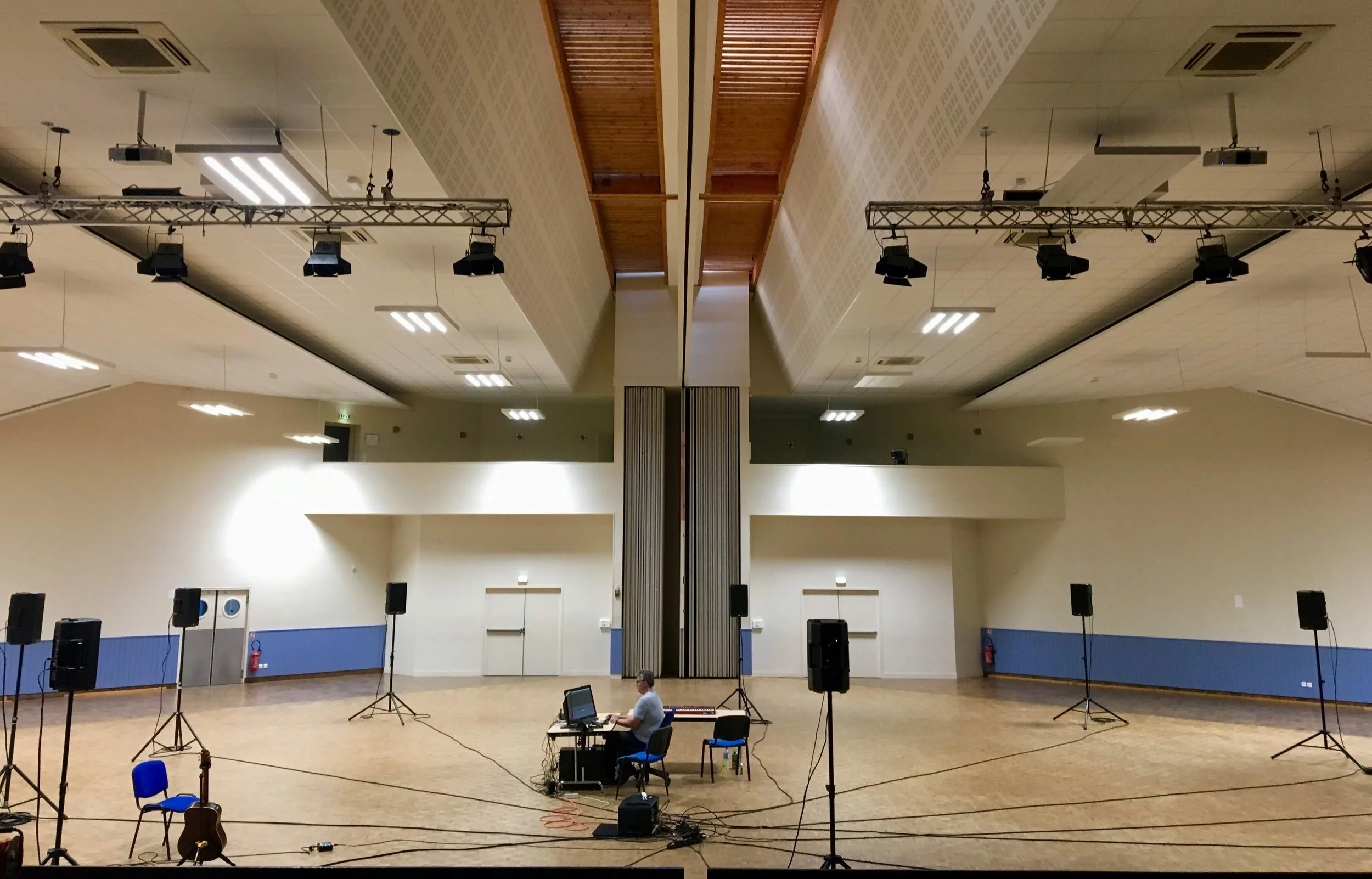 Nous avons réalisé les premiers essais de notre Soundarium en 2019, notre système de diffusion sonore immersif conçu pour offrir une expérience en 360 degrés au public. Ces premières expérimentations ont eu lieu dans la salle de Saint-Jean-le-Blanc, où nous avons mis en place une couronne de 8 enceintes disposées autour du public. Ce dispositif a permis d'explorer une spatialisation enveloppante et précise.